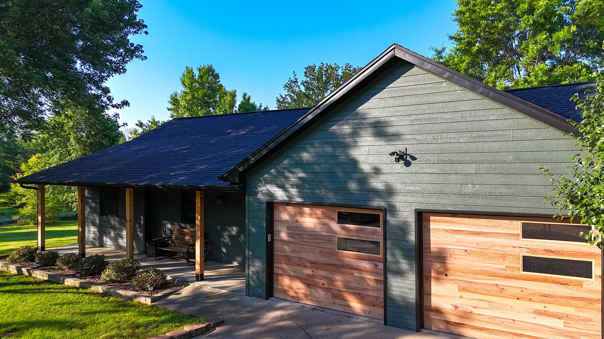 To create a bold, modern aesthetic, the homeowner selected a rich emerald green finish paired with striking black soffit, delivering sharp contrast and standout curb appeal. We completed the transformation with new Pella® windows, elevating both the energy efficiency and overall appearance of the home. The result is a low-maintenance, storm-restored exterior with a fresh, refined look that will stand strong (and look beautiful) for decades to come.
